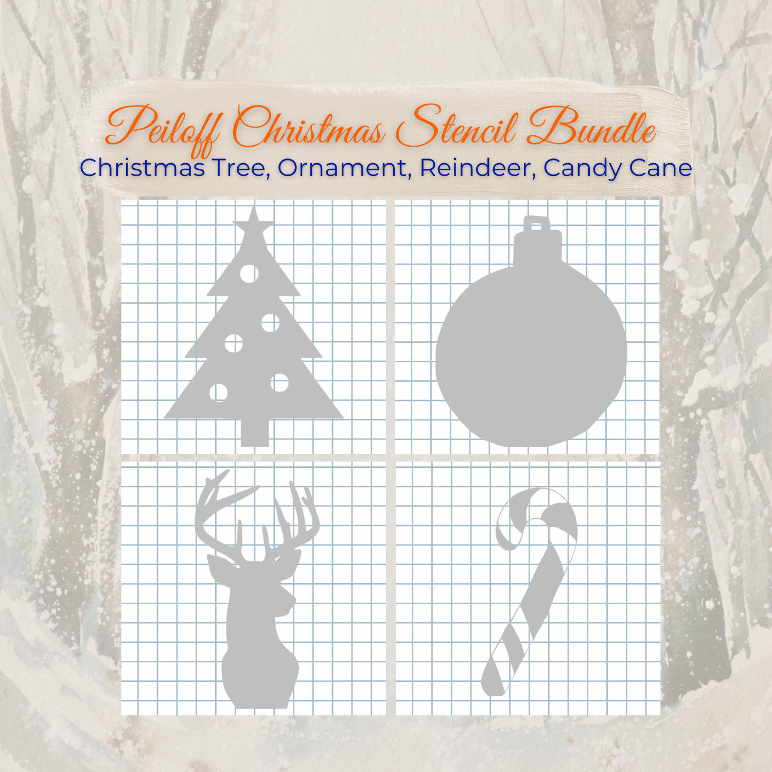 Christmas Stencil Bundle – 6" Reusable Peiloff Masks (Tree, Ornament, Reindeer Head & Candy Cane)
